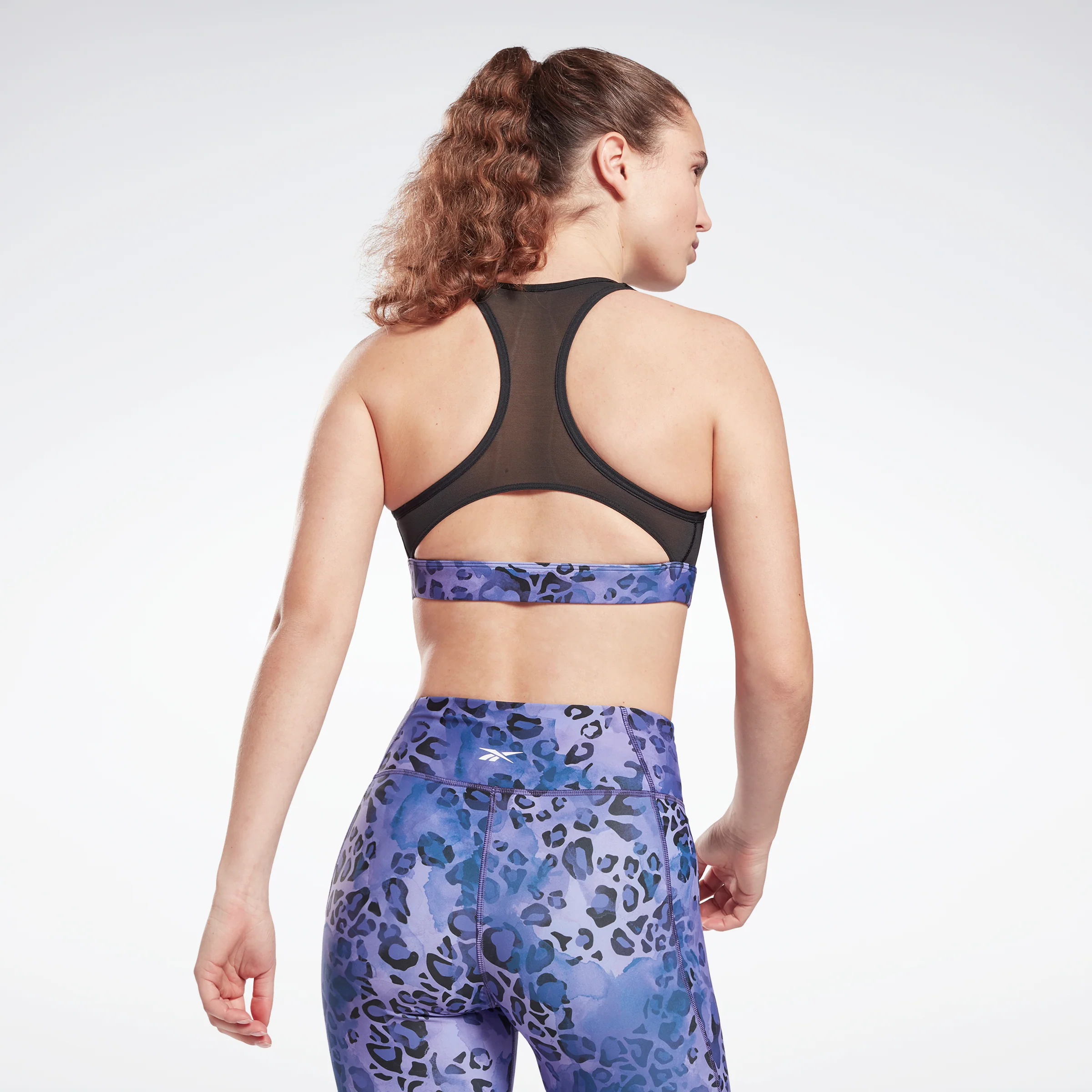 Watch out, spin class. Channel the speed and grace of the world's fastest animal in this Reebok sports bra. Designed for medium-impact activities it's made of sweat-wicking fabric and breathable mesh to help you stay cool and dry. The leopard print makes it fierce.