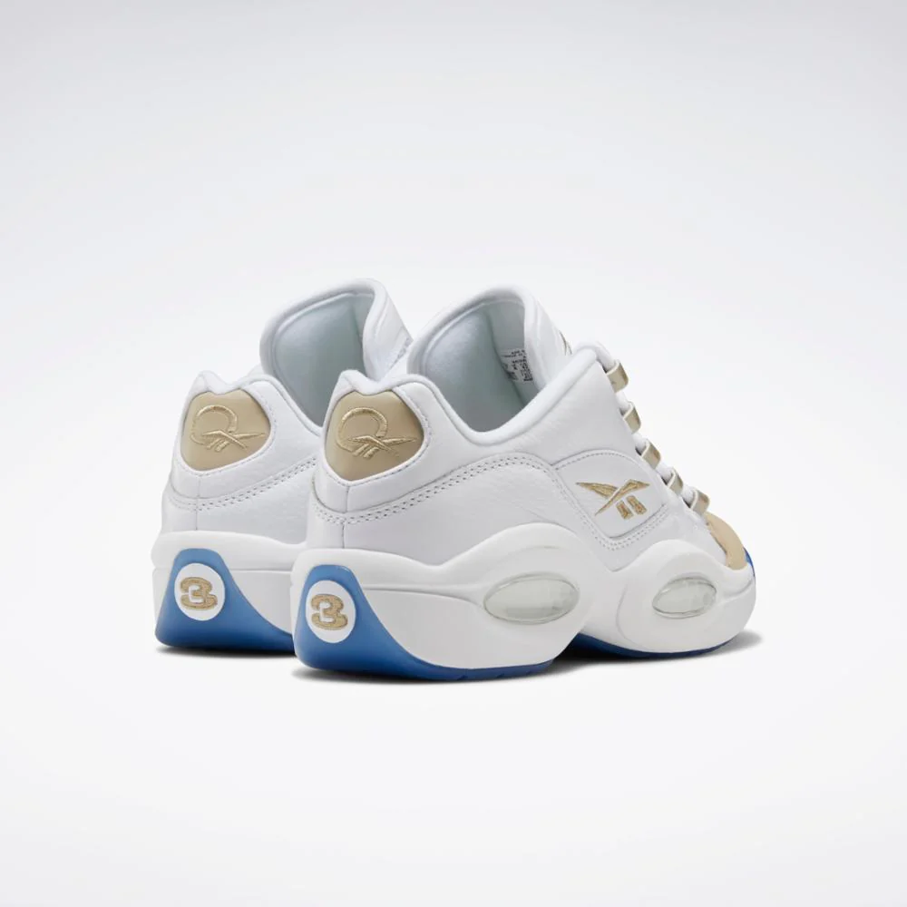 The crown jewel of Reebok's basketball archive. These men's Question Low shoes bring back the oatmeal toe, first released in 1999. They feature a full grain leather upper, a chunky midsole and an ice outsole to amp up the look. Hexagonal cushioning provides all-day comfort.