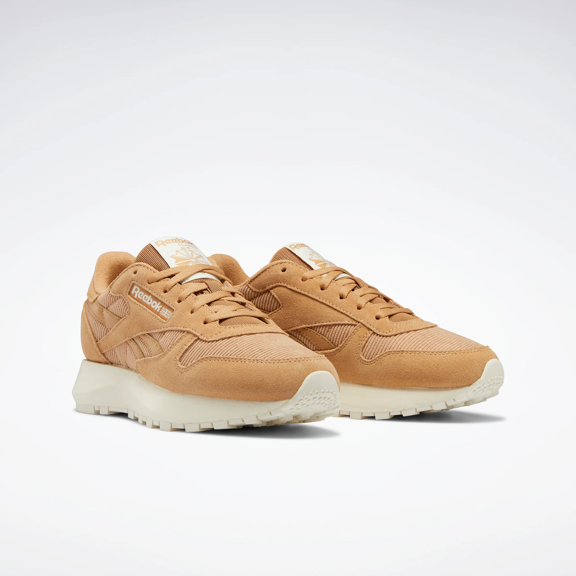 Get those cosy, soft vibes whenever you lace up these women's Reebok Classic Leather shoes. The iconic archival style has been remade with a premium mix of suede and corduroy on the upper. Understated neutral colours mean you can pair them with almost anything.